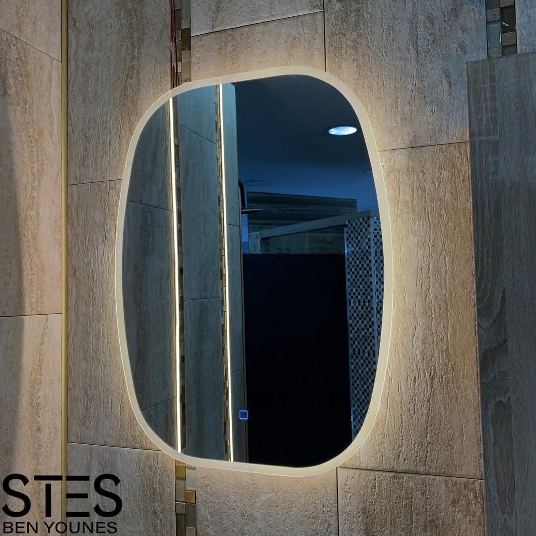 - Éclairage : Bande LED intégrée autour du périmètre, offrant une lumière uniforme et sans ombre